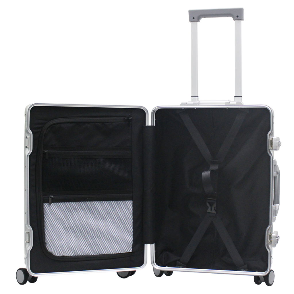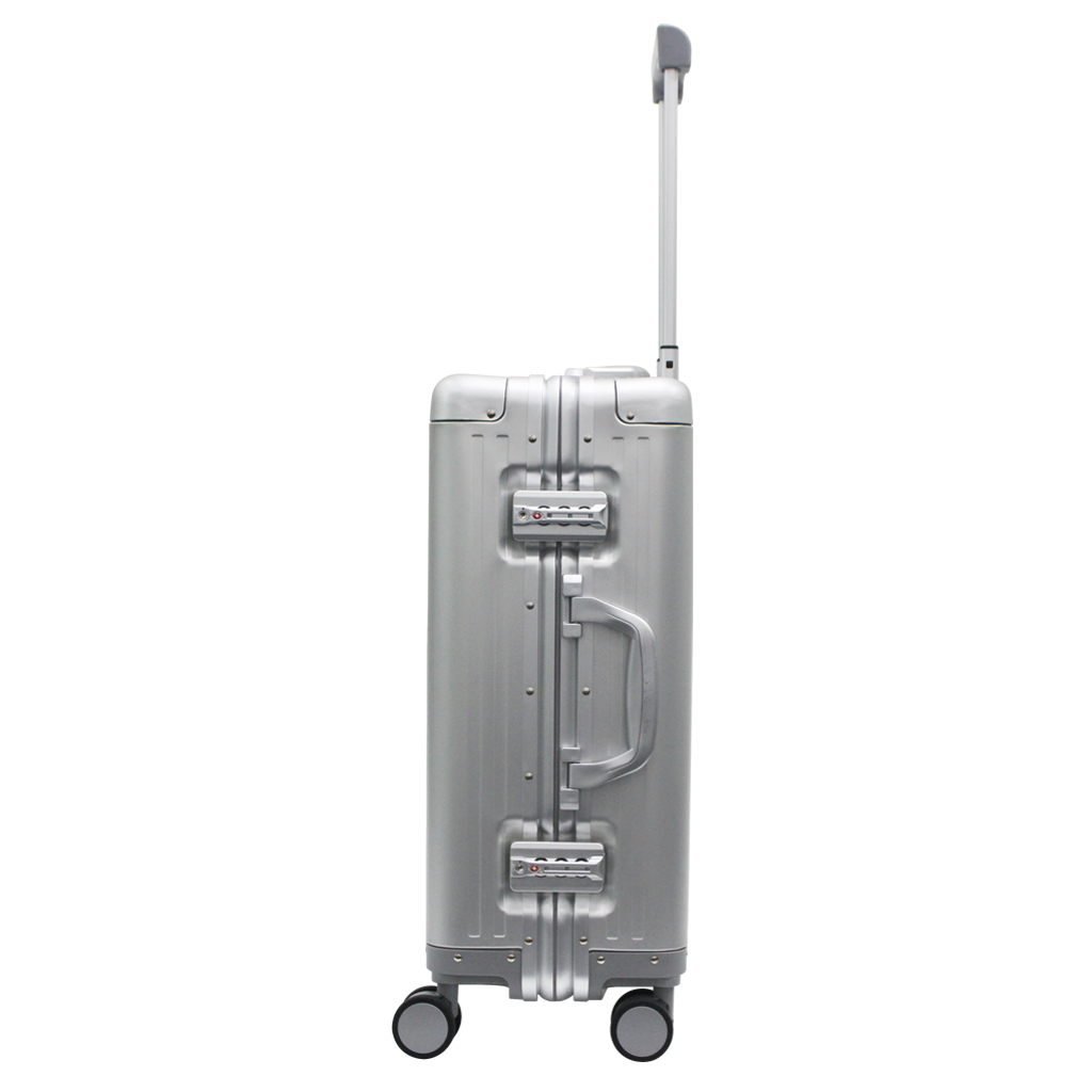 Barry Smith aluminium hard case luggage with TSA-Approved Lock, Top and side carry handles, 360 degree rotation (8W) for easy maneuverability and detailed interior with packing strap.