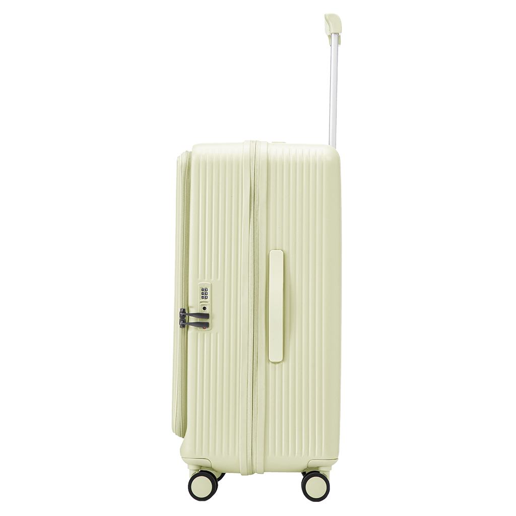 Barry Smith 8-wheeler hard case luggage with TSA-Approved Lock, utility hook, Safety Zip, Expandable, Flat-top opening, Top and side carry handles, 360 degree rotation for easy maneuverability and detailed interior with packing strap